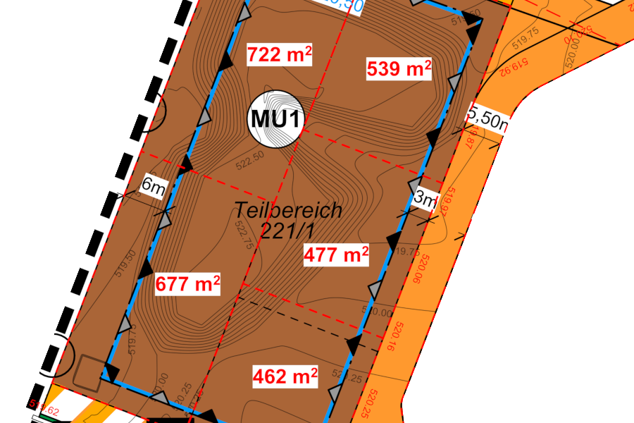 Im Teilbereich Flst. 221/1 – Wohnen – MU1 im urbanen Bebauungsplangebiet