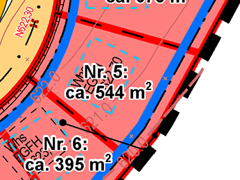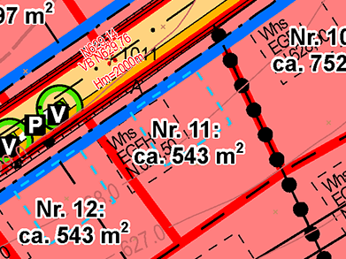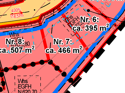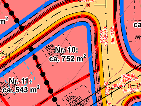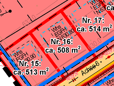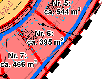 | Grundstücksgrößen: ab 395 m2 bis 752 m2 | |