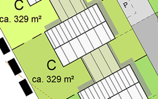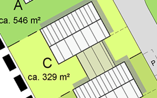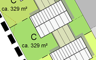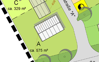 | Grundstücksgrößen: ab 329 m2 bis 624 m2 | |
