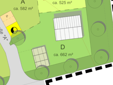 Die verbleibenden Grundstücke für freistehende Einfamilienhäuser und Einfamilienhäuser in Kettenbauweise werden 2026 ausgeschrieben. Im Folgenden wird nur auf die Grundstücke für Dreifamilienhäuser eingegangen.