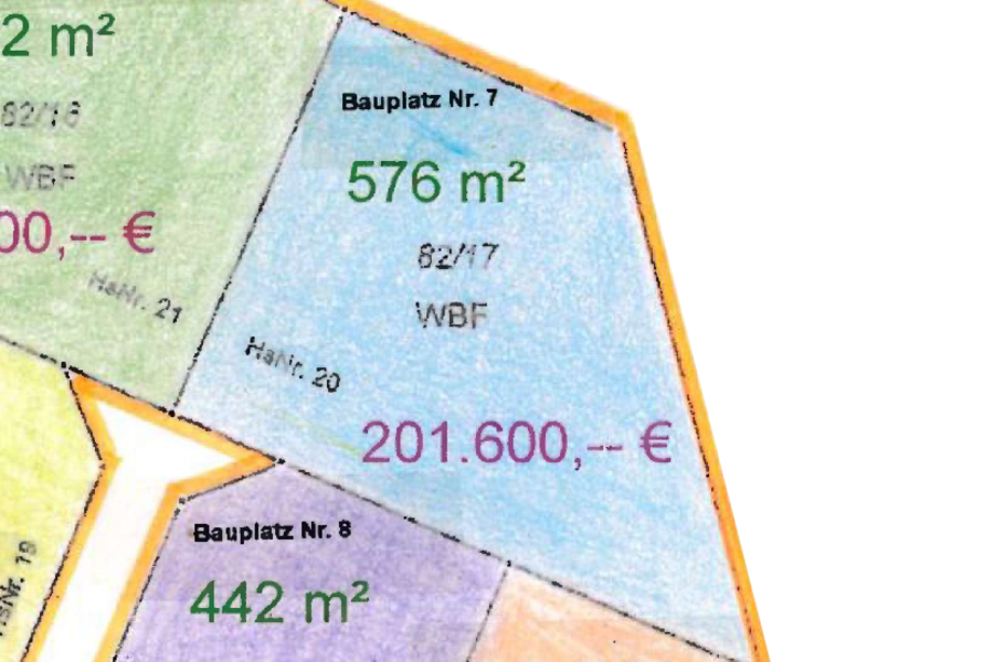 | Bauzwang | Baubeginn innerhalb von 2 Jahren. Bezugsfertigstellung innerhalb von 3 Jahren. Baufertigstellung inkl. Außenanlagen und Garten innerhalb von 5 Jahren. 10 Jahre Eigennutzung. |