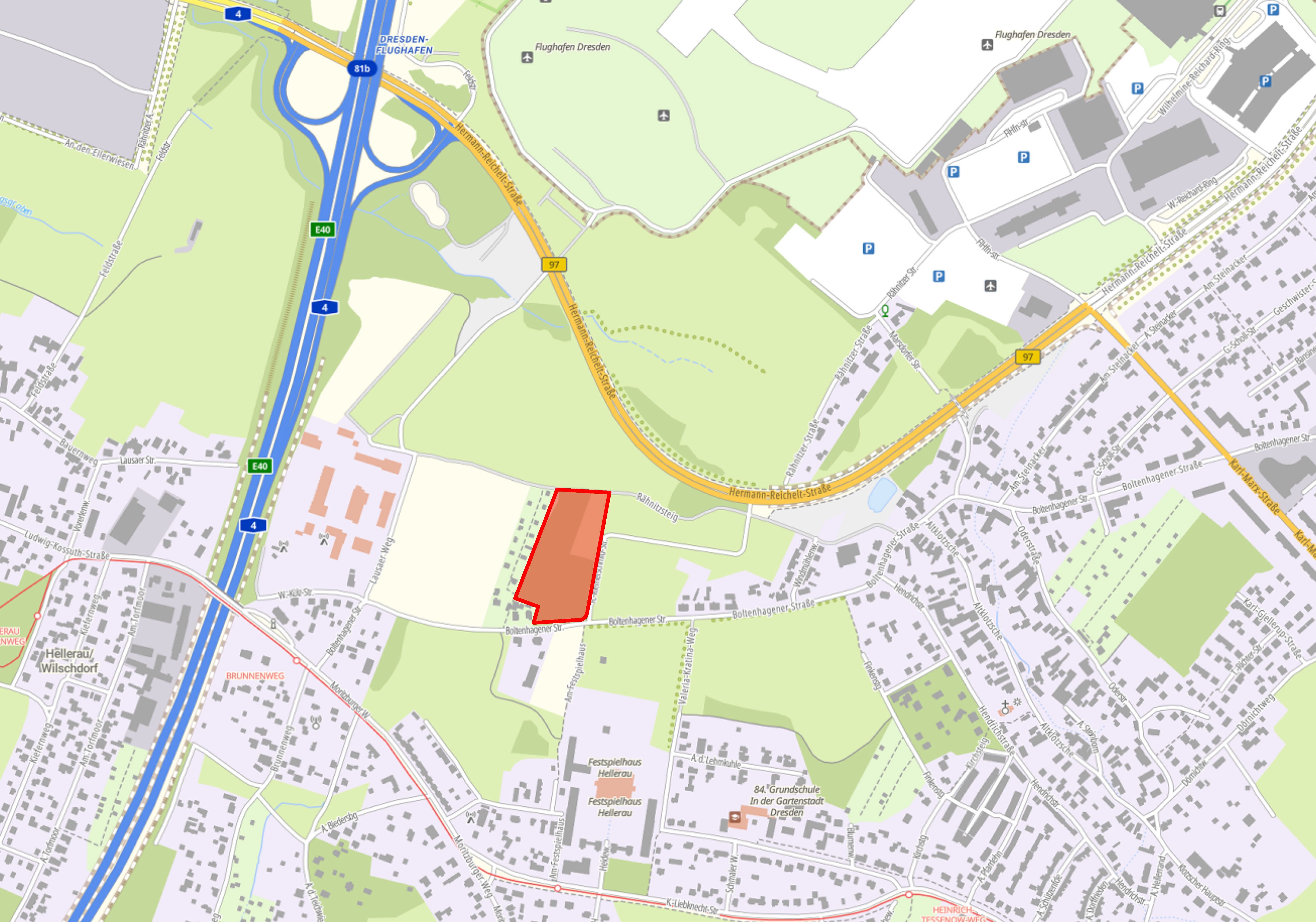 Bebaubarkeit: richtet sich nach B-Plan Nr. 294, Dresden-Klotzsche Nr. 6, Rähnitzsteig; Baugebiete GE 1, 2 und 6