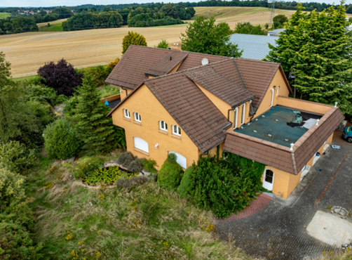 Objektbeschreibung: voll unterkellertes Einfamilienhaus mit Einliegerwohnung im Dachgeschoss und separatem Zugang sowie drei Garagen und zwei Stellplätze auf dem Grundstück; ortsübliche Erschließung mit Wasser, Abwasser im Trennsystem, Strom, Telefon, TV-Satellitenanlage, DSL-Anschluss; auf dem Grundstück befindet sich eine 10.000 Liter-Regenwasser-Sammelanlage