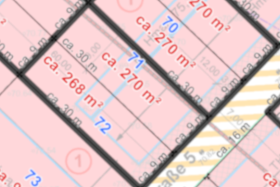 Es handelt sich um zwei nebeneinanderliegende, separat vermessene Grundstücke, die gemeinsam als eine Einheit verkauft werden. Beide Grundstücke müssen mit jeweils einer Doppelhaushälfte bebaut werden.