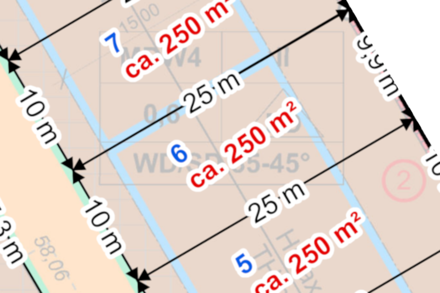 Hinzu kommen Vermessungskosten in Höhe von voraussichtlich ca. 6,00 €/m², die im Kaufpreis nicht enthalten sind und separat zum Kaufpreis in Rechnung gestellt werden.