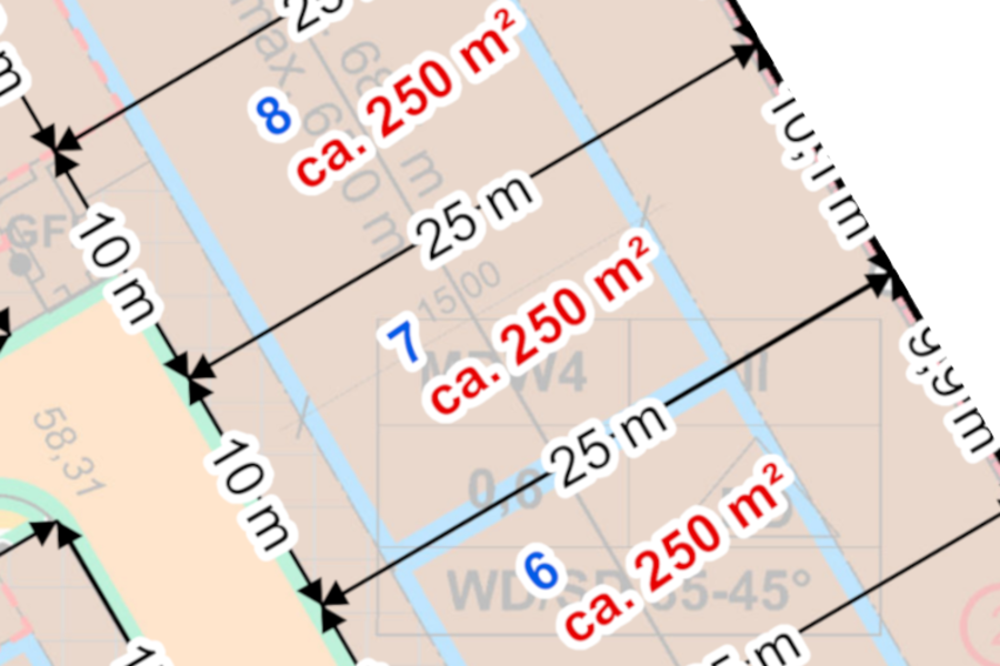 Hinzu kommen Vermessungskosten in Höhe von voraussichtlich ca. 6,00 €/m², die im Kaufpreis nicht enthalten sind und separat zum Kaufpreis in Rechnung gestellt werden.