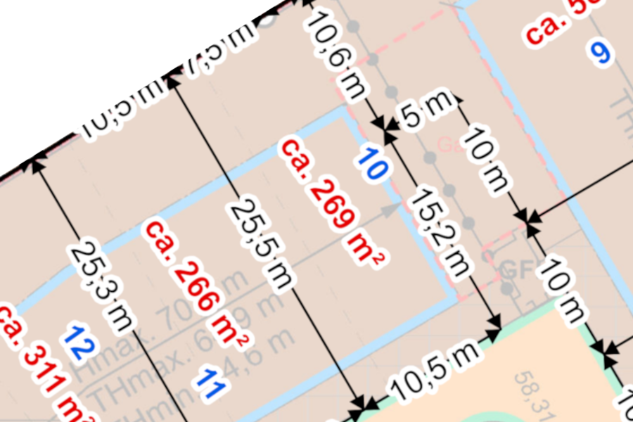 Hinzu kommen Vermessungskosten in Höhe von voraussichtlich ca. 6,00 €/m², die im Kaufpreis nicht enthalten sind und separat zum Kaufpreis in Rechnung gestellt werden.