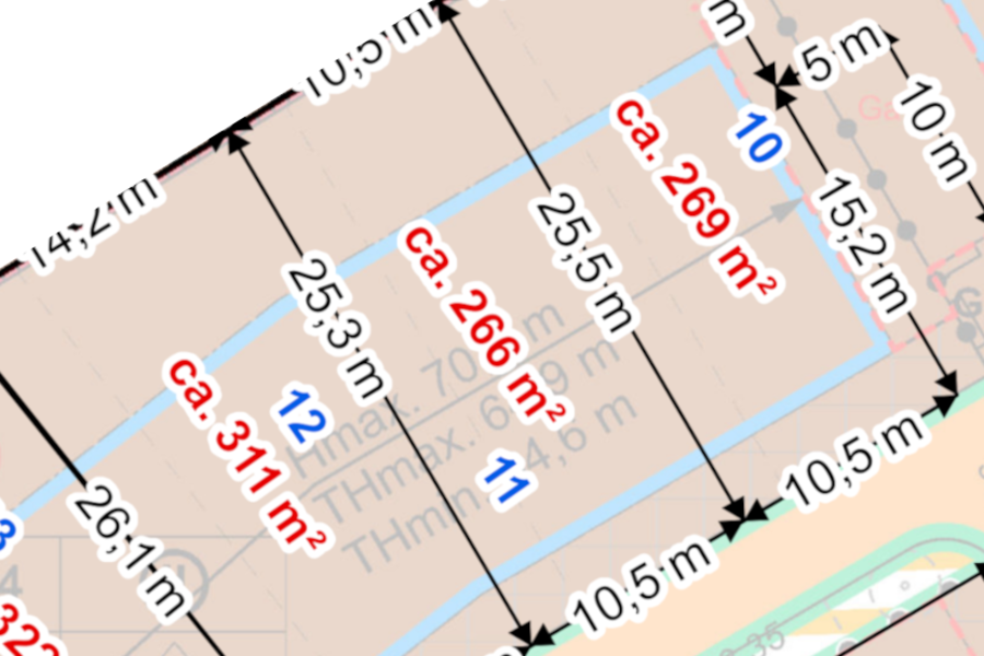 Hinzu kommen Vermessungskosten in Höhe von voraussichtlich ca. 6,00 €/m², die im Kaufpreis nicht enthalten sind und separat zum Kaufpreis in Rechnung gestellt werden.