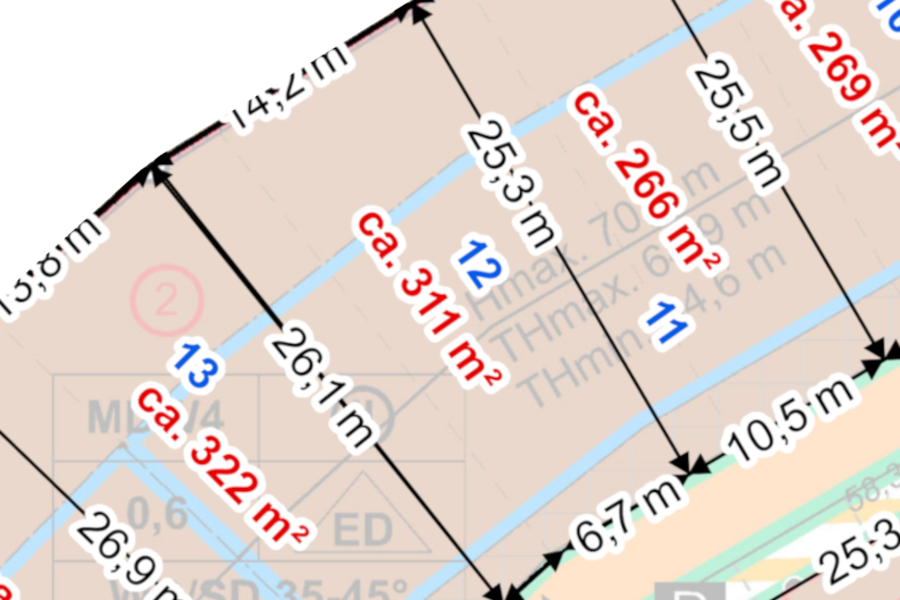 Hinzu kommen Vermessungskosten in Höhe von voraussichtlich ca. 6,00 €/m², die im Kaufpreis nicht enthalten sind und separat zum Kaufpreis in Rechnung gestellt werden.