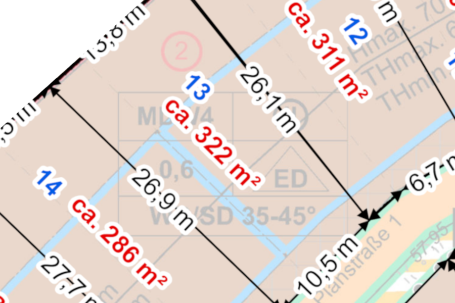 Hinzu kommen Vermessungskosten in Höhe von voraussichtlich ca. 6,00 €/m², die im Kaufpreis nicht enthalten sind und separat zum Kaufpreis in Rechnung gestellt werden.