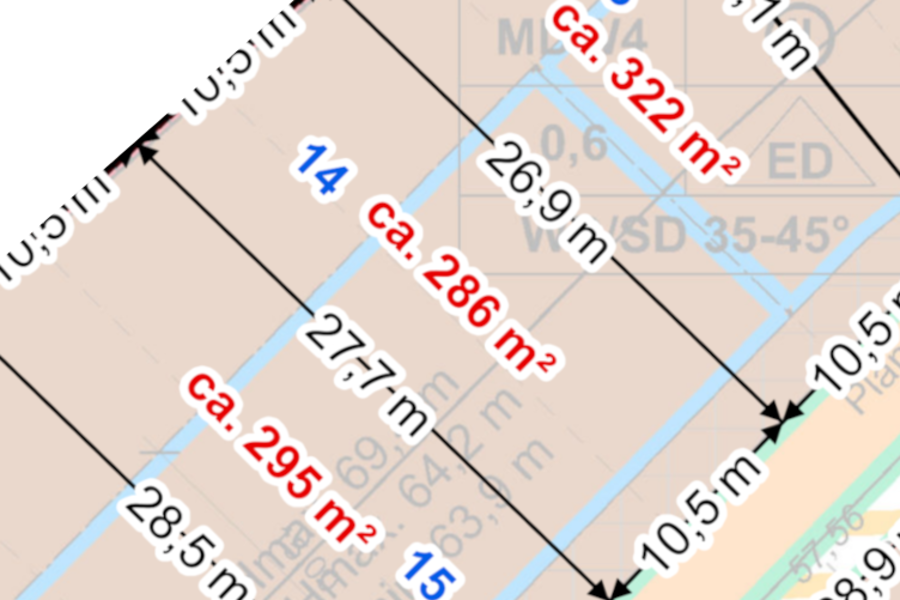 Hinzu kommen Vermessungskosten in Höhe von voraussichtlich ca. 6,00 €/m², die im Kaufpreis nicht enthalten sind und separat zum Kaufpreis in Rechnung gestellt werden.