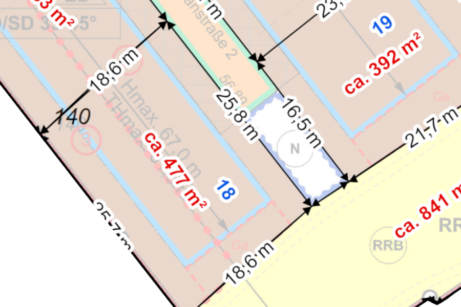 Das Grundstück kann auf Wunsch des Käufers/der Käuferin auch im Erbbaurecht zu 5,70 €/m² = 2718,90 € p.a. erworben werden.