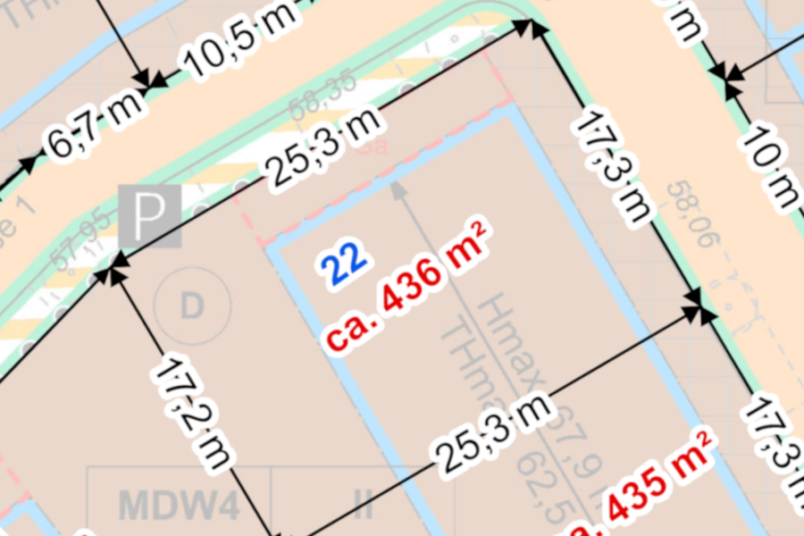 Hinzu kommen Vermessungskosten in Höhe von voraussichtlich ca. 6,00 €/m², die im Kaufpreis nicht enthalten sind und separat zum Kaufpreis in Rechnung gestellt werden.