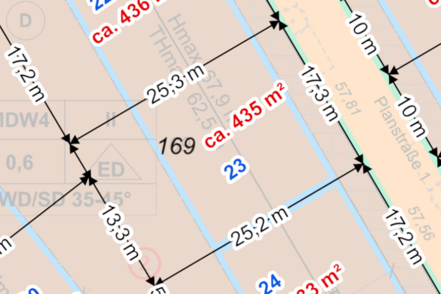 Hinzu kommen Vermessungskosten in Höhe von voraussichtlich ca. 6,00 €/m², die im Kaufpreis nicht enthalten sind und separat zum Kaufpreis in Rechnung gestellt werden.