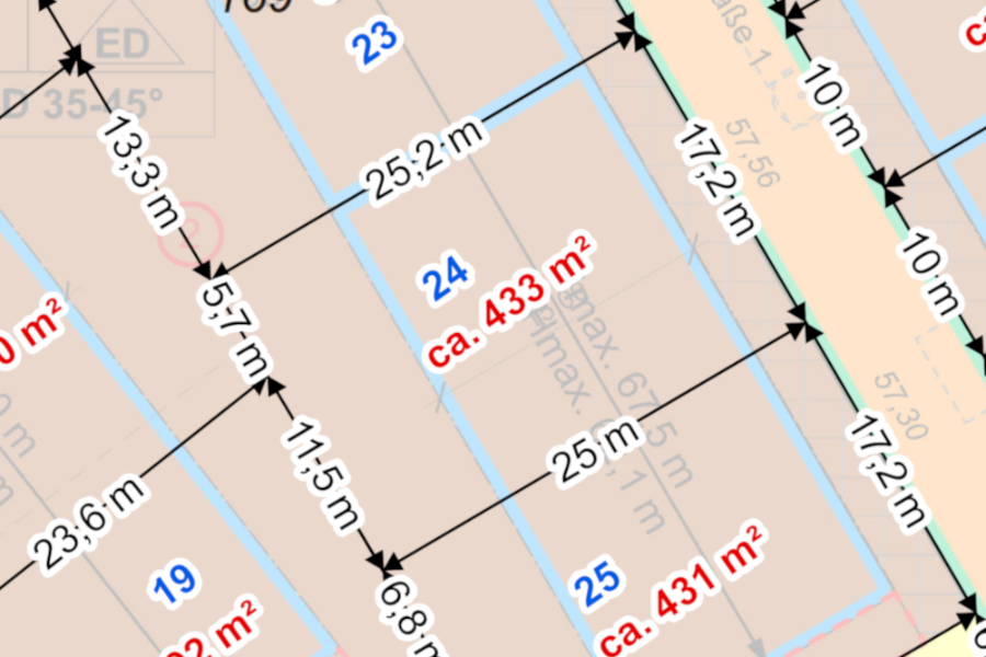 Hinzu kommen Vermessungskosten in Höhe von voraussichtlich ca. 6,00 €/m², die im Kaufpreis nicht enthalten sind und separat zum Kaufpreis in Rechnung gestellt werden.