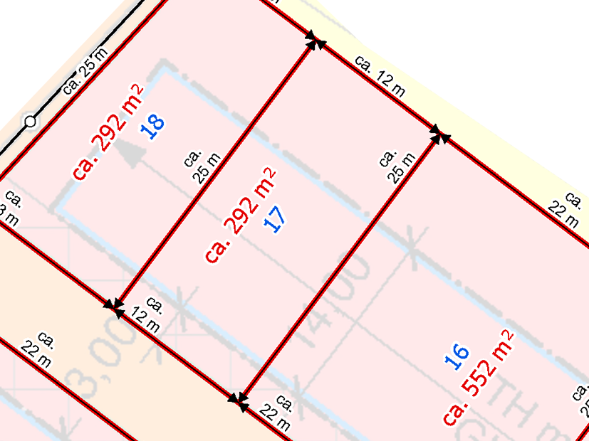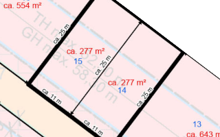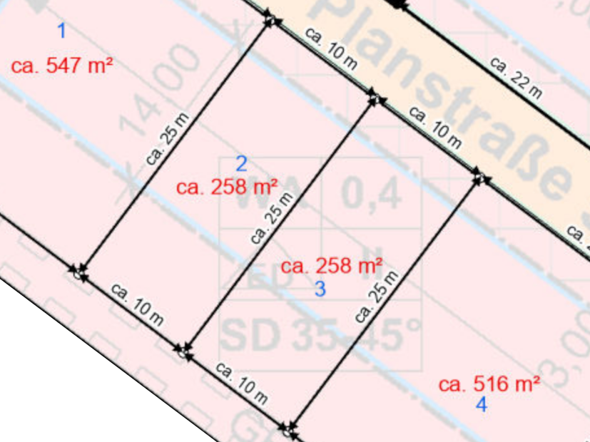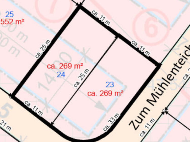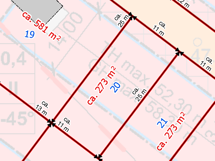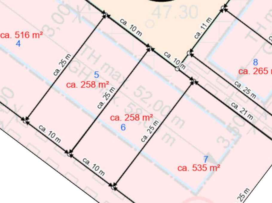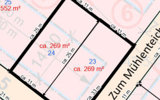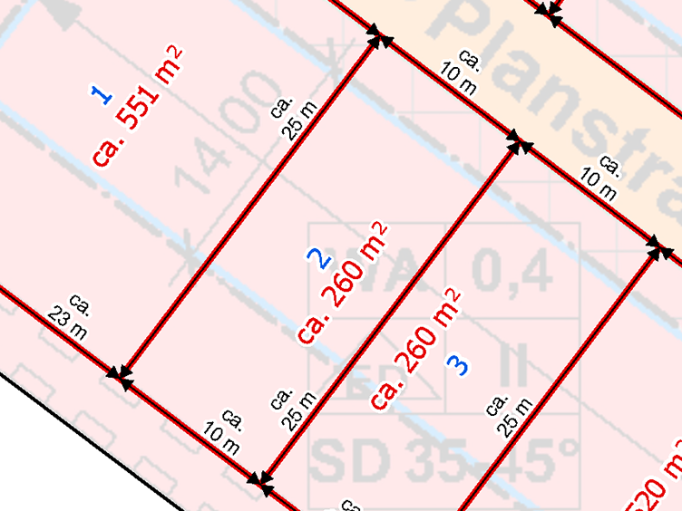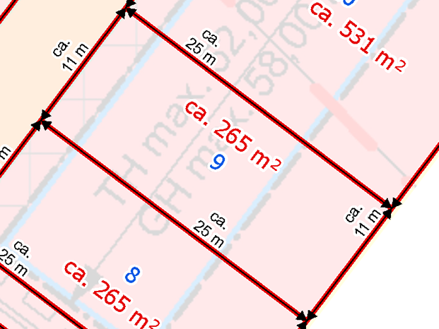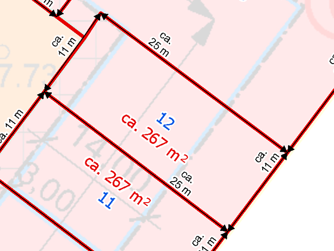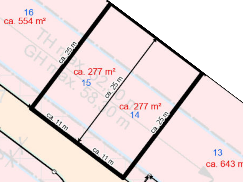 Auf einer Fläche von rund 11.915 m² sind bis zu 9 freie Baugrundstücke für den Bau von Doppelhäusern verfügbar.