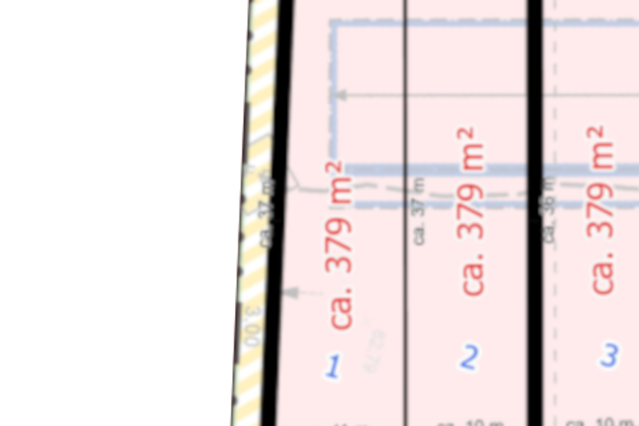 Es handelt sich um zwei nebeneinanderliegende, separat vermessene Grundstücke, die gemeinsam als eine Einheit verkauft werden. Beide Grundstücke müssen mit jeweils einer Doppelhaushälfte bebaut werden.