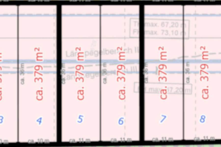 Es handelt sich um zwei nebeneinanderliegende, separat vermessene Grundstücke, die gemeinsam als eine Einheit verkauft werden. Beide Grundstücke müssen mit jeweils einer Doppelhaushälfte bebaut werden.