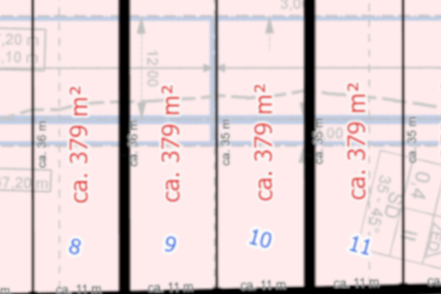 Es handelt sich um zwei nebeneinanderliegende, separat vermessene Grundstücke, die gemeinsam als eine Einheit verkauft werden. Beide Grundstücke müssen mit jeweils einer Doppelhaushälfte bebaut werden.