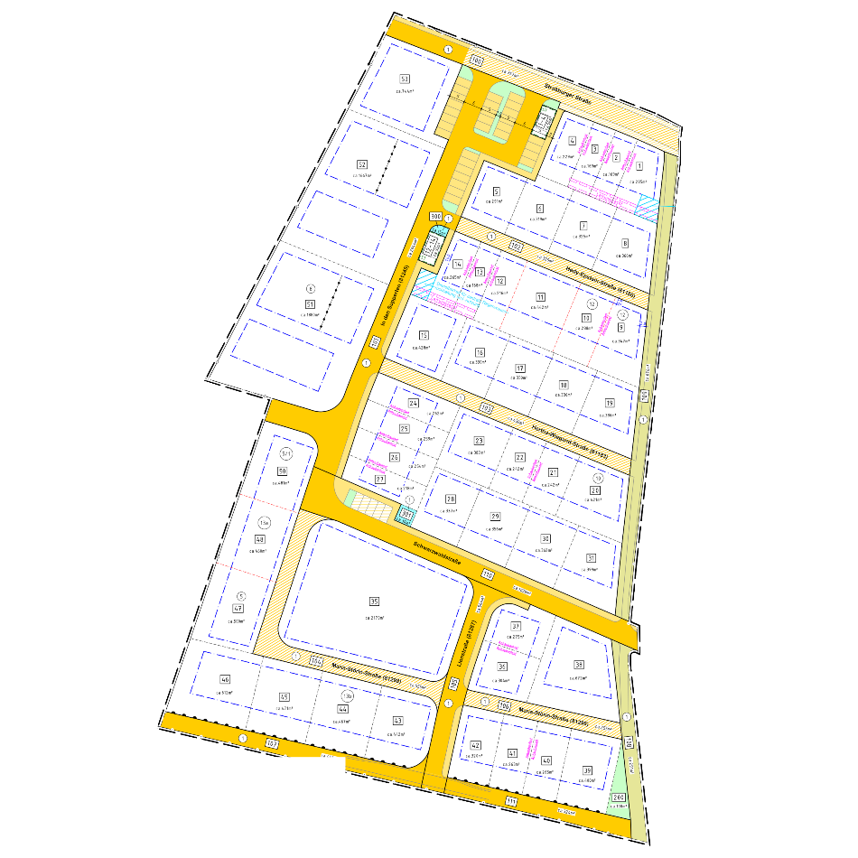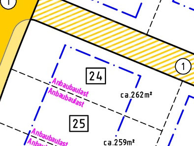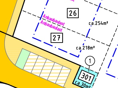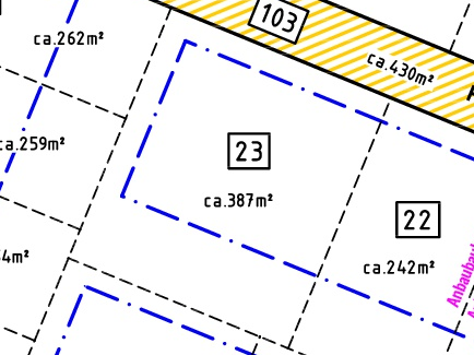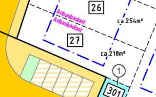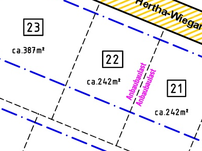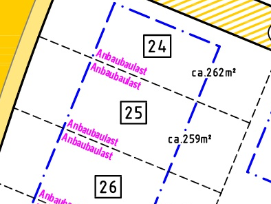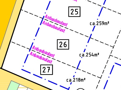 | Grundstücksgrößen: ab 218 m2 bis 442 m2 | |