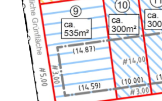 | Grundstücksgrößen: ab 295 m2 bis 536 m2 | |