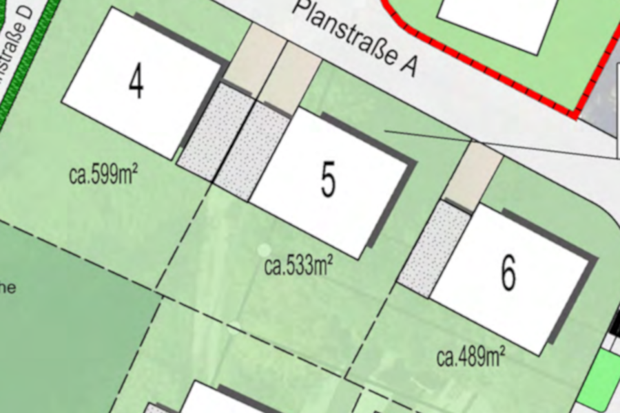 | Bauzwang | Die Grundstücke sind innerhalb von sechs Jahren nach Abschluss des Kaufvertrags mit gemäß Festsetzungen des Bebauungsplans fertiggestellten Wohnhäusern zu bebauen. |