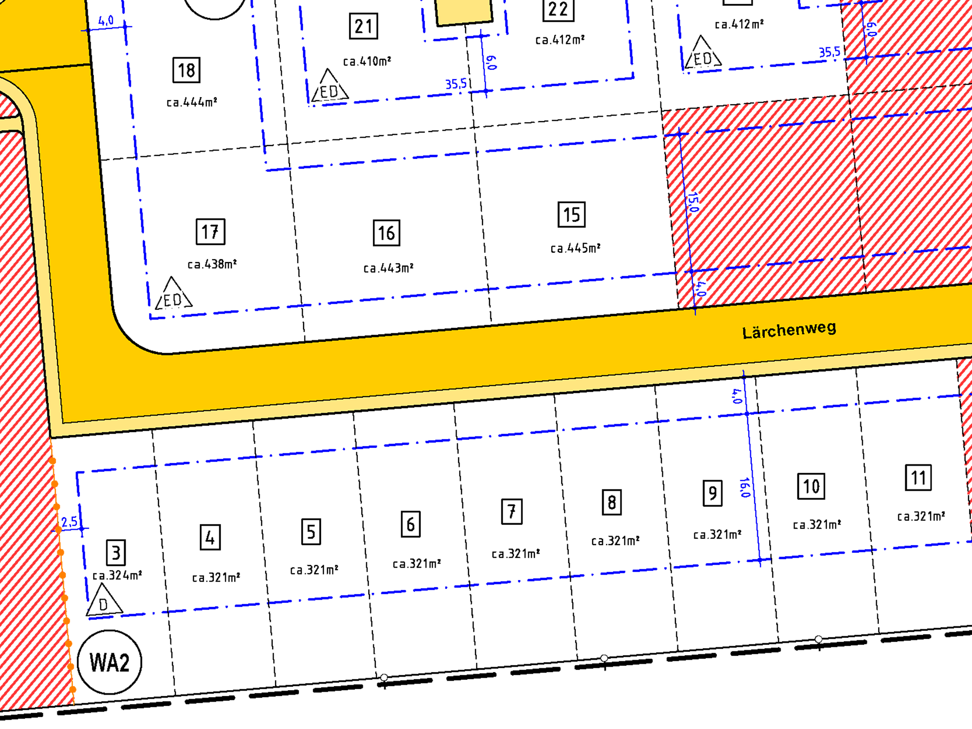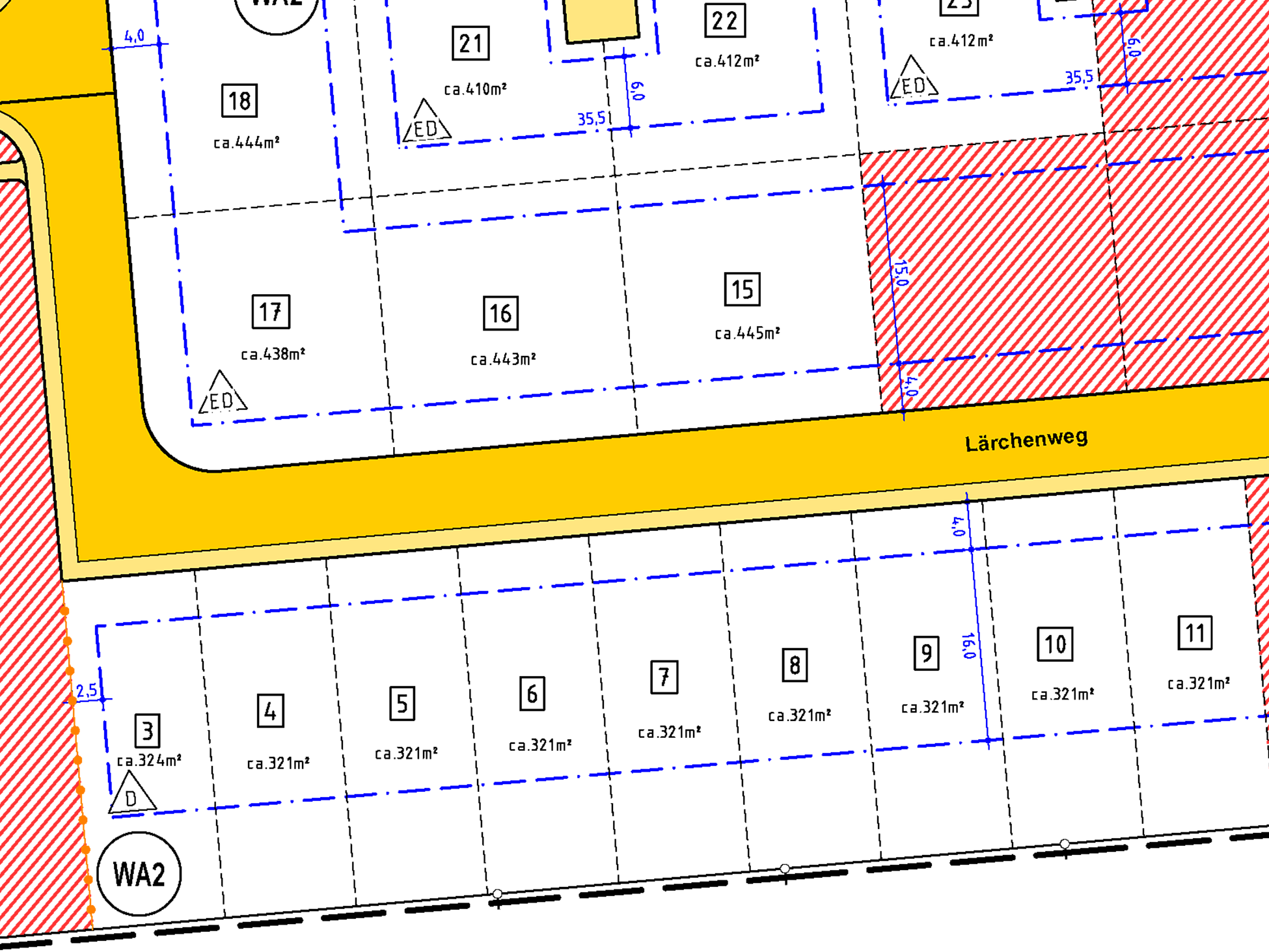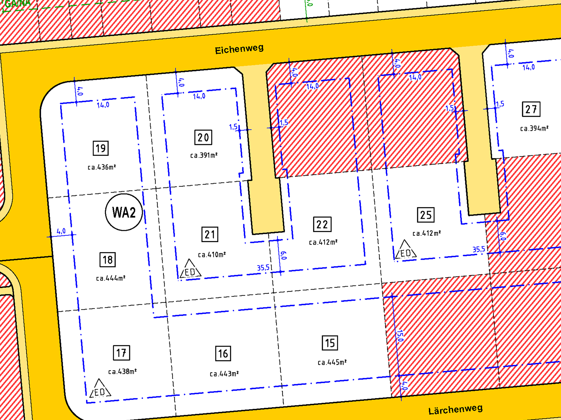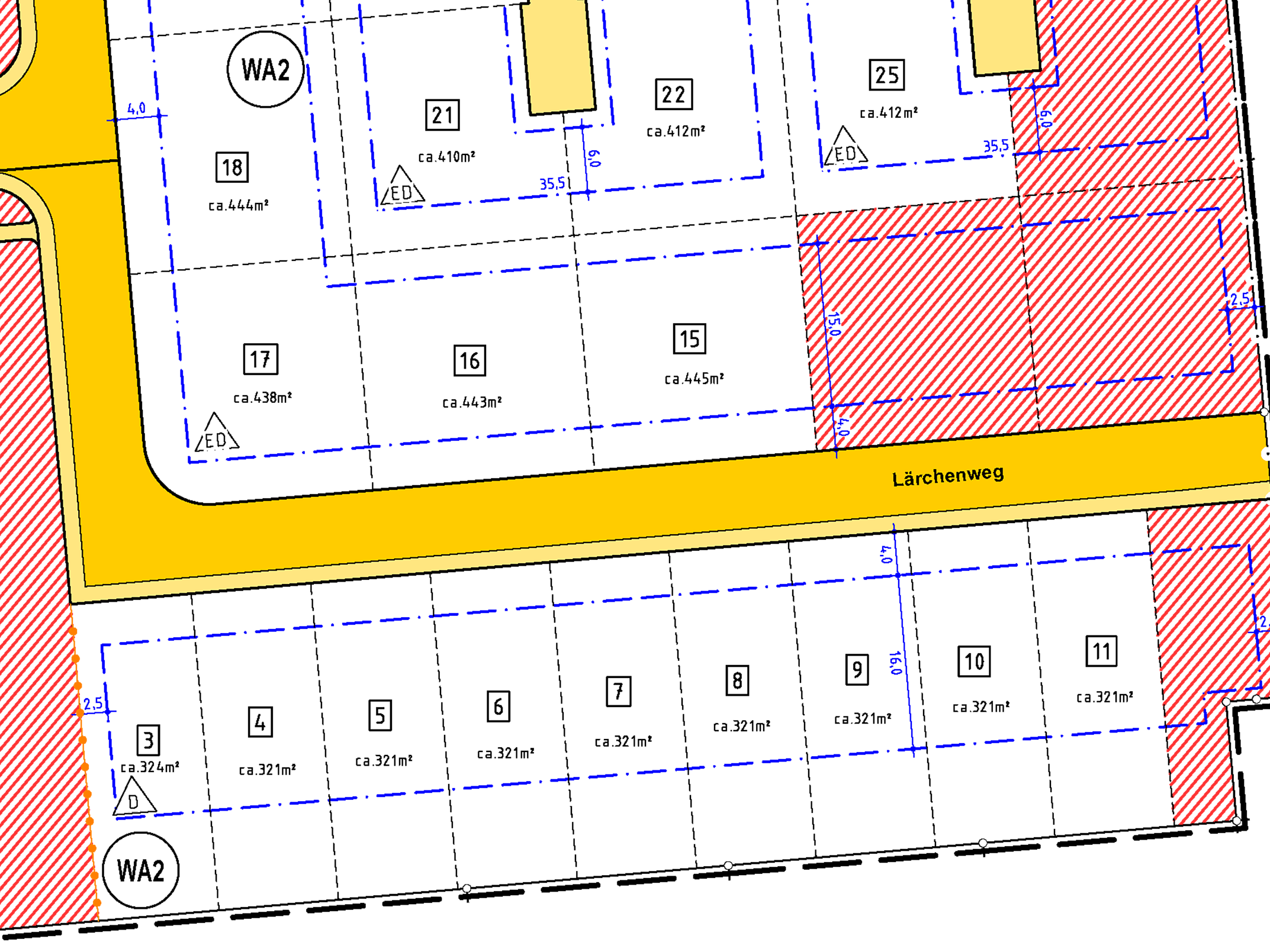 | Grundstücksgrößen: ab 321 m2 bis 445 m2 | |