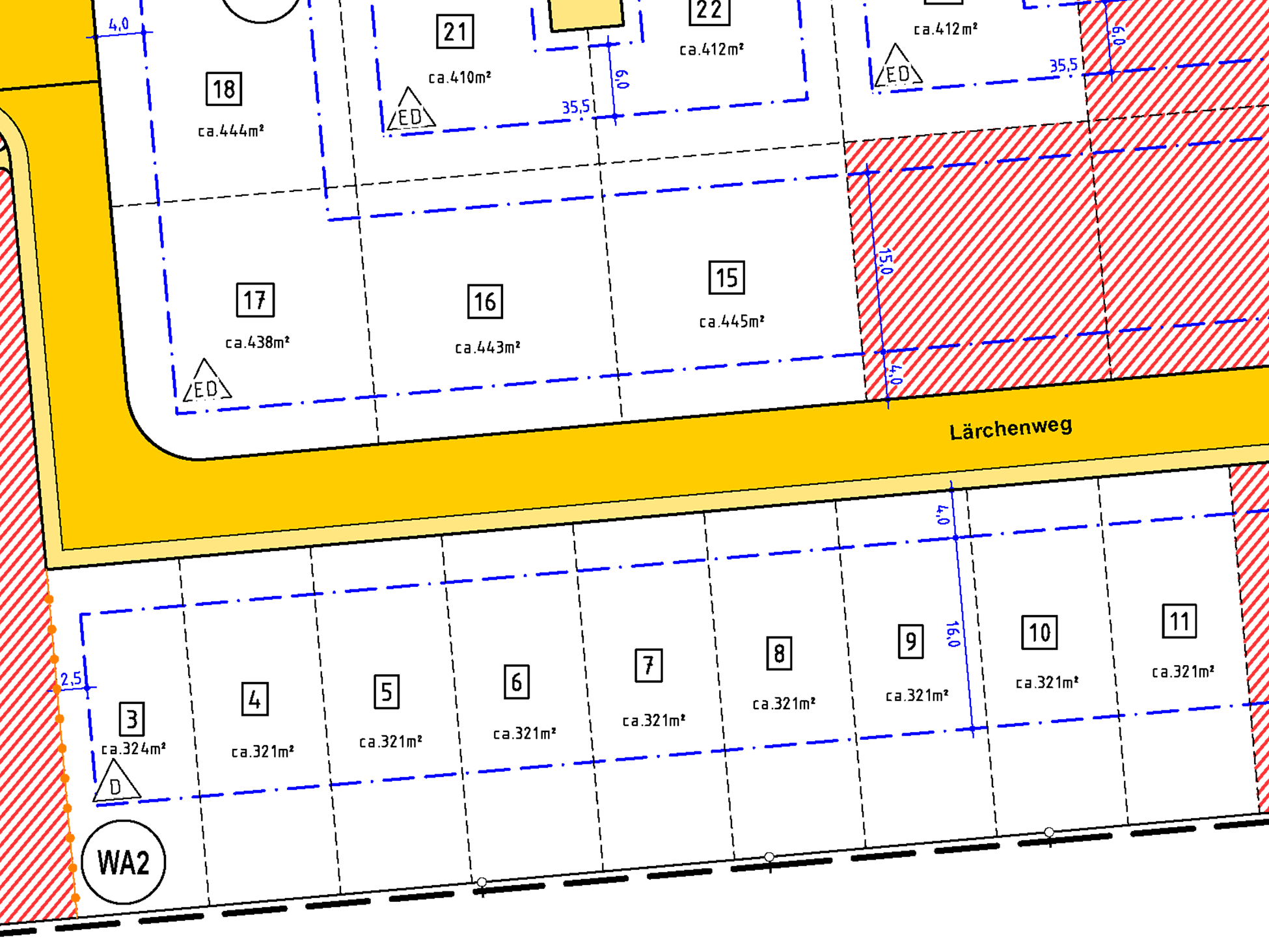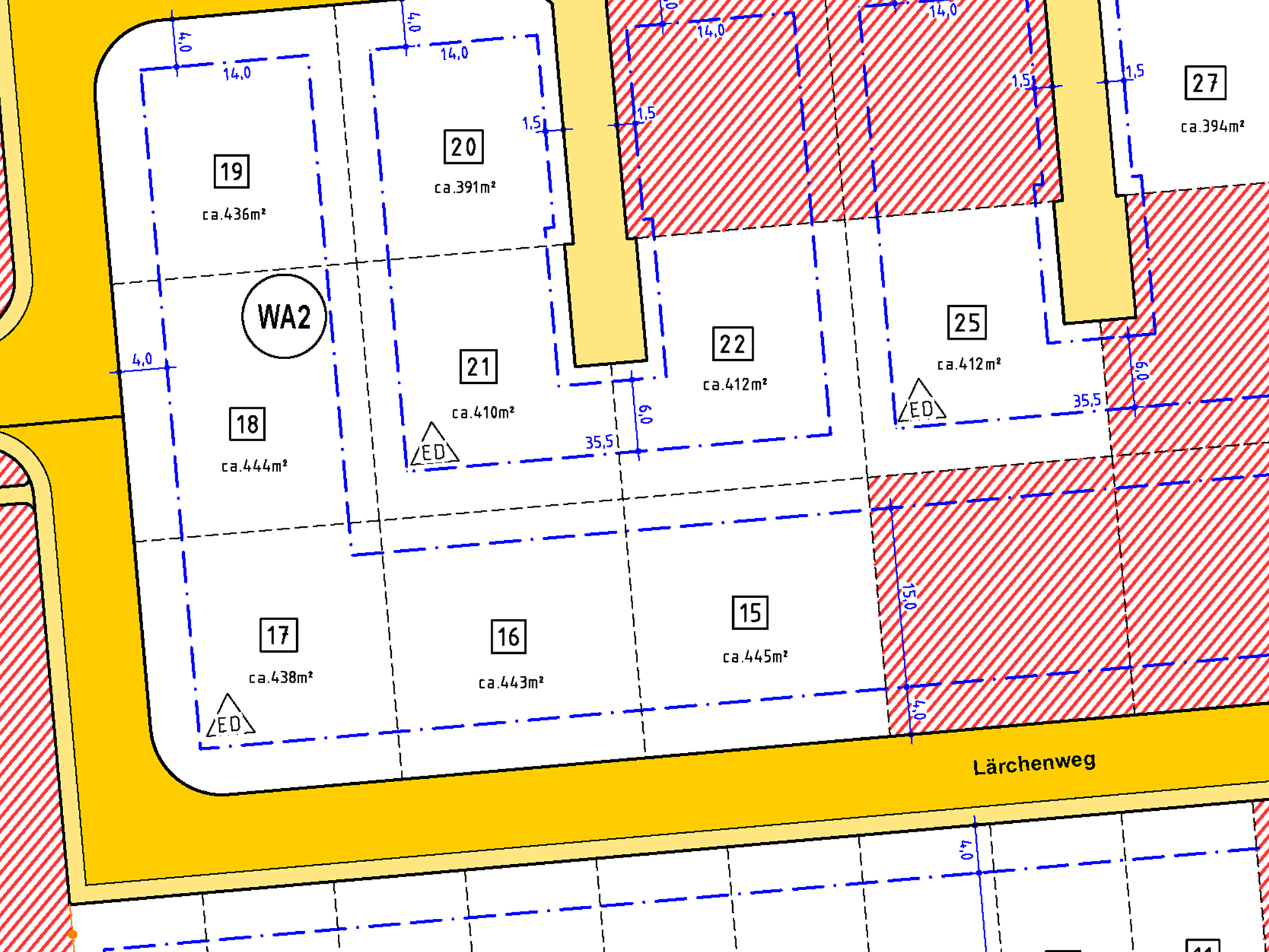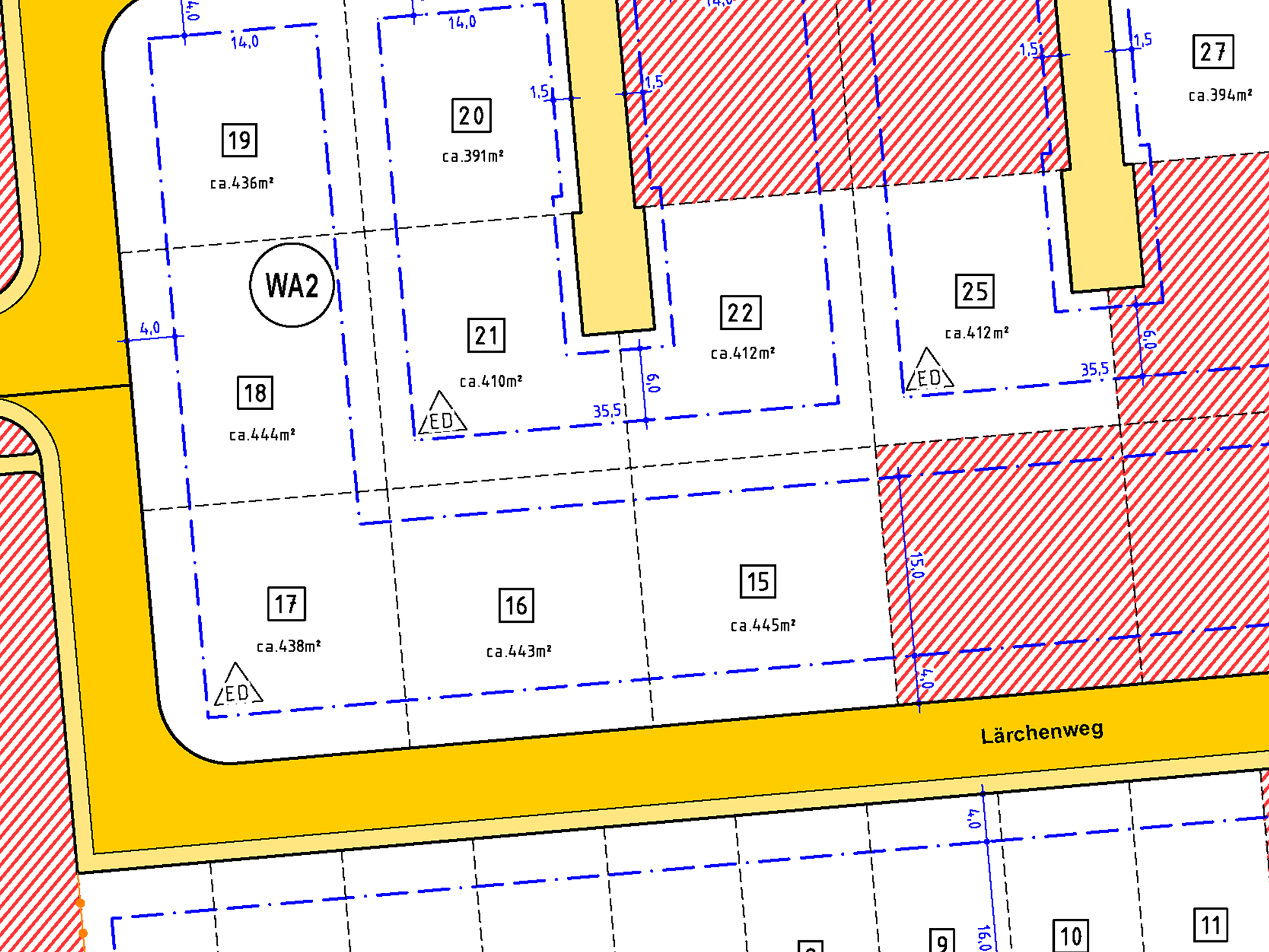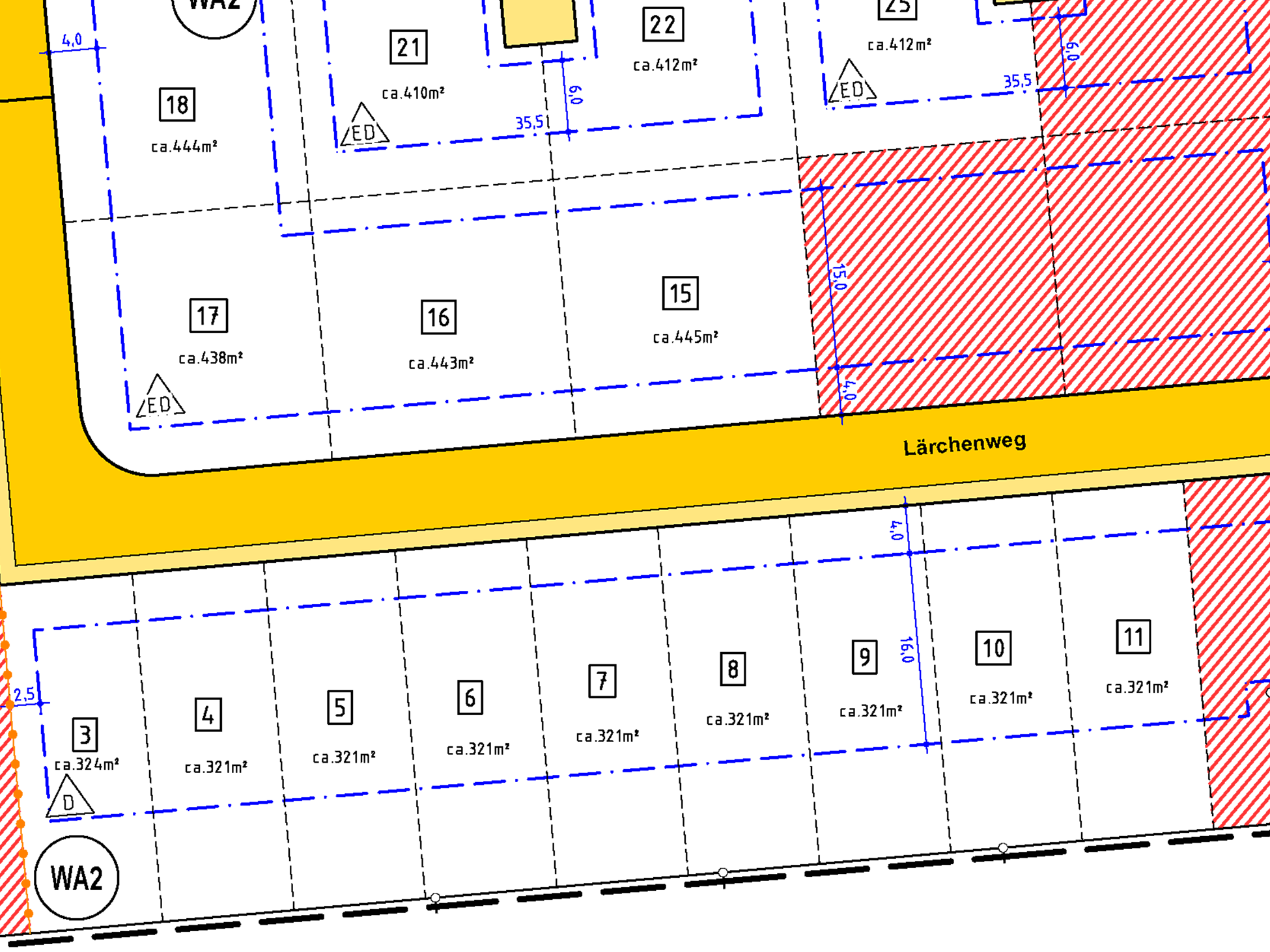 | Grundstücksgrößen: ab 321 m2 bis 445 m2 | |