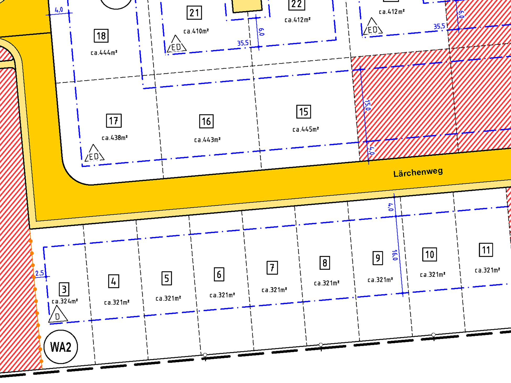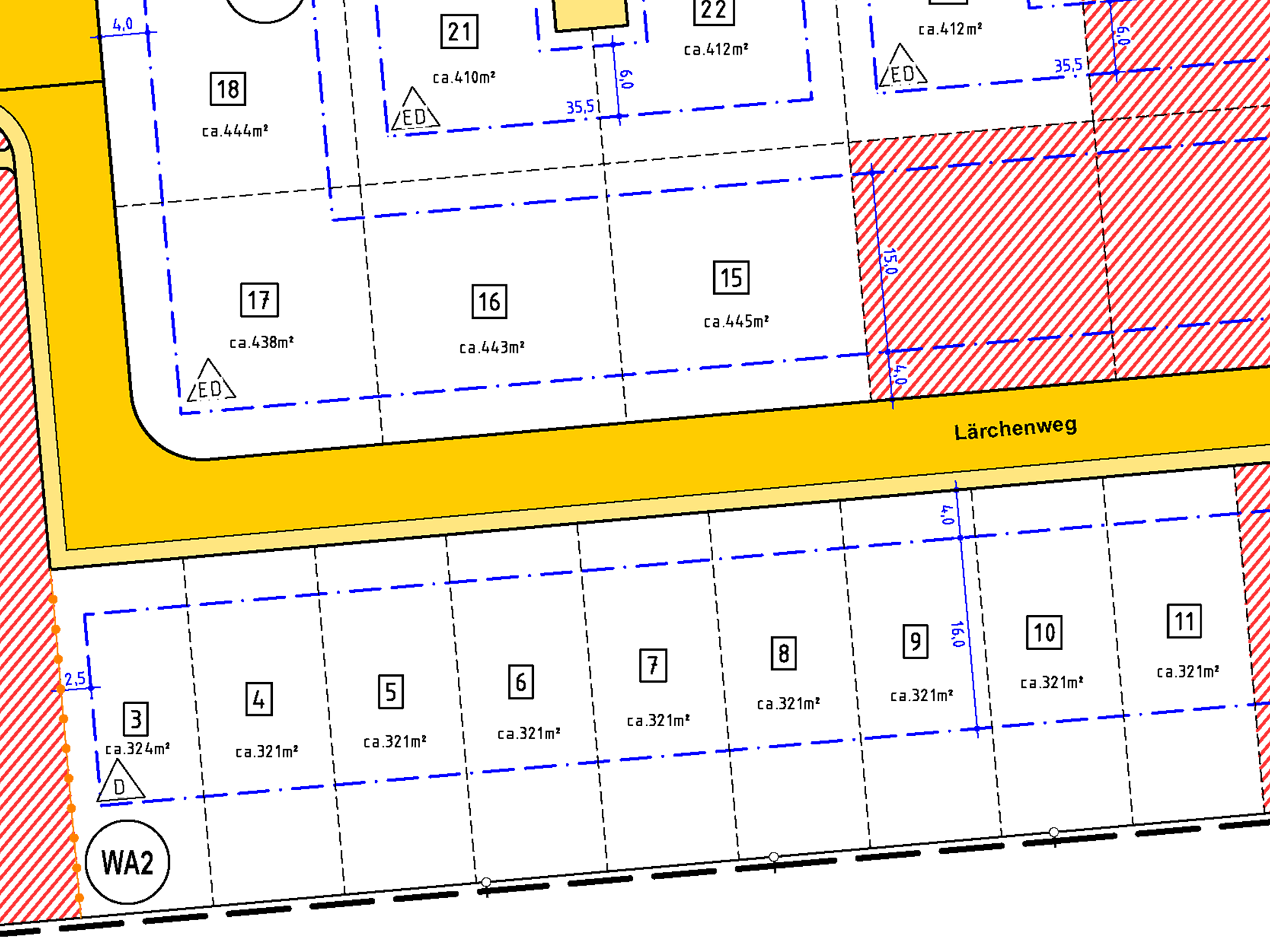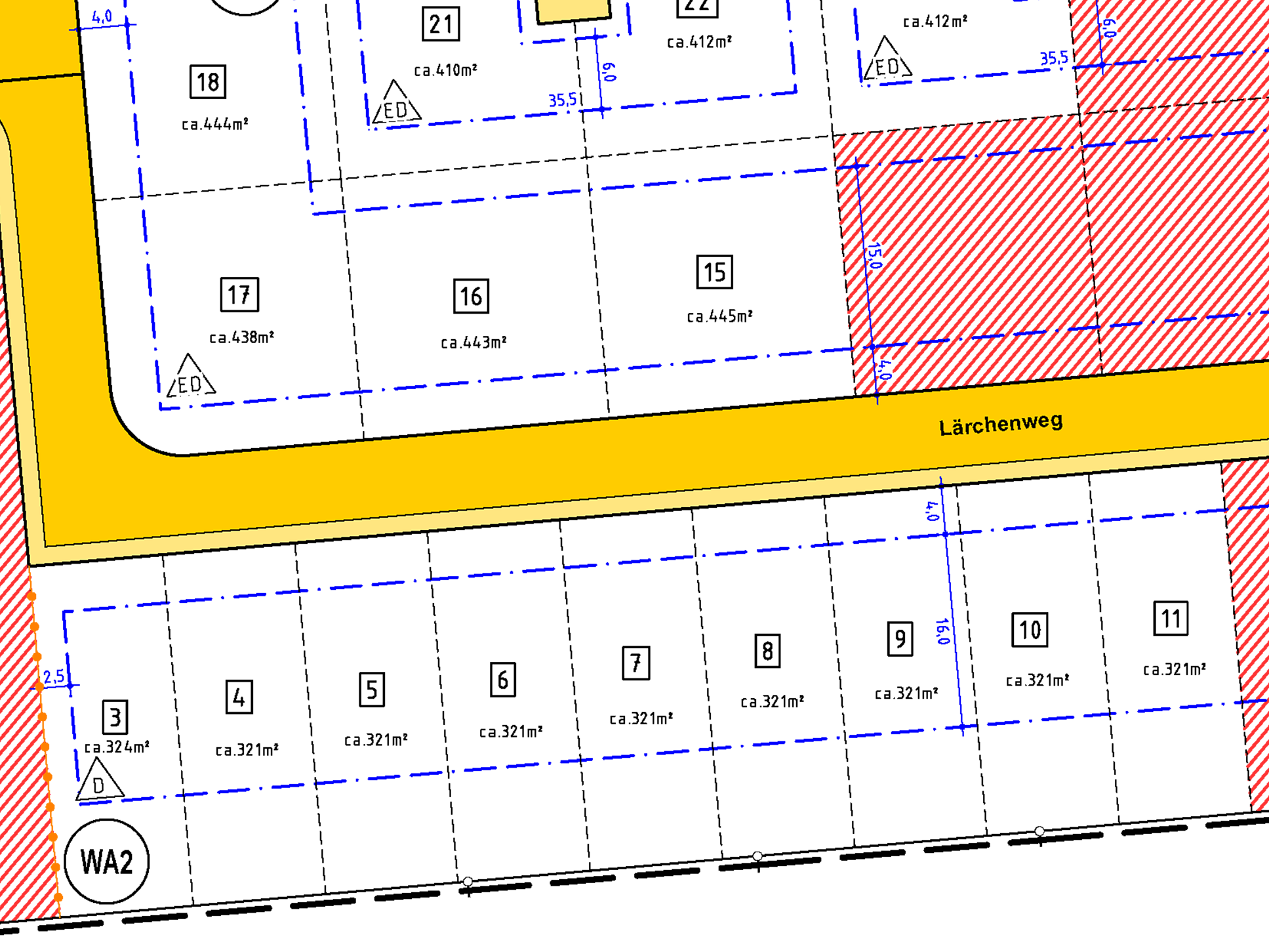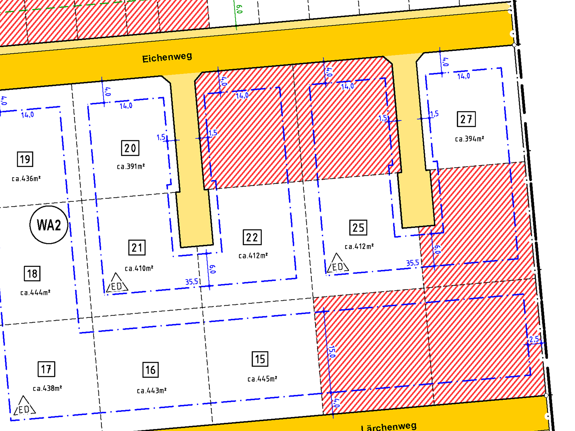 | Grundstücksgrößen: ab 321 m2 bis 445 m2 | |