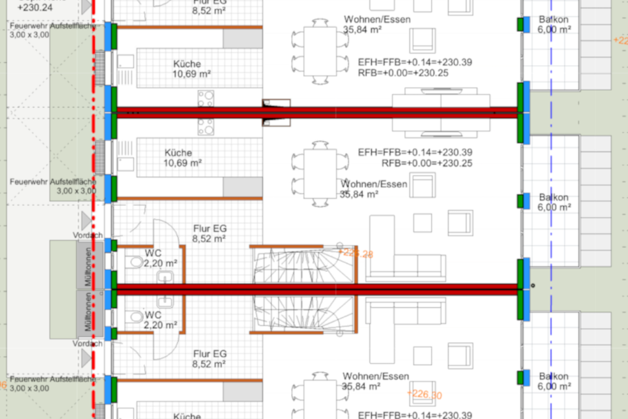 Die Wohnfläche des Eck-Mittelhauses beträgt dann: 130,54 m²