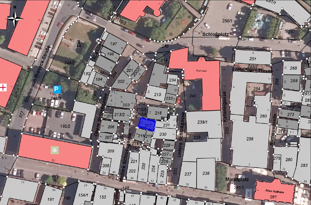 Lage der Liegenschaft „Mittlere Schlossgasse 10“