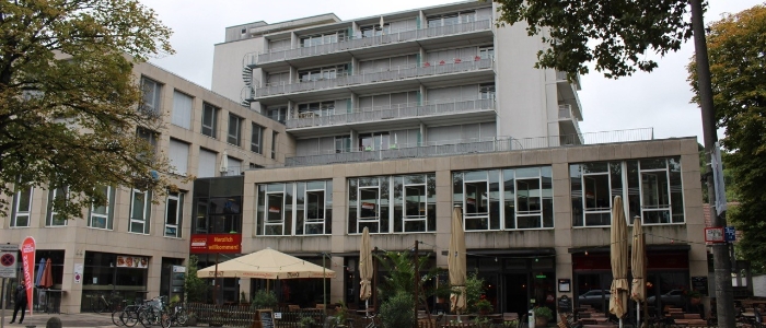 Sehr zentral gelegen und trotzdem sehr ruhig. Die Büroflächen liegen im hinteren Erdgeschoss an der Wilhelmstraße 44, unmittelbar an den Parkplätzen und der Tiefgarage.