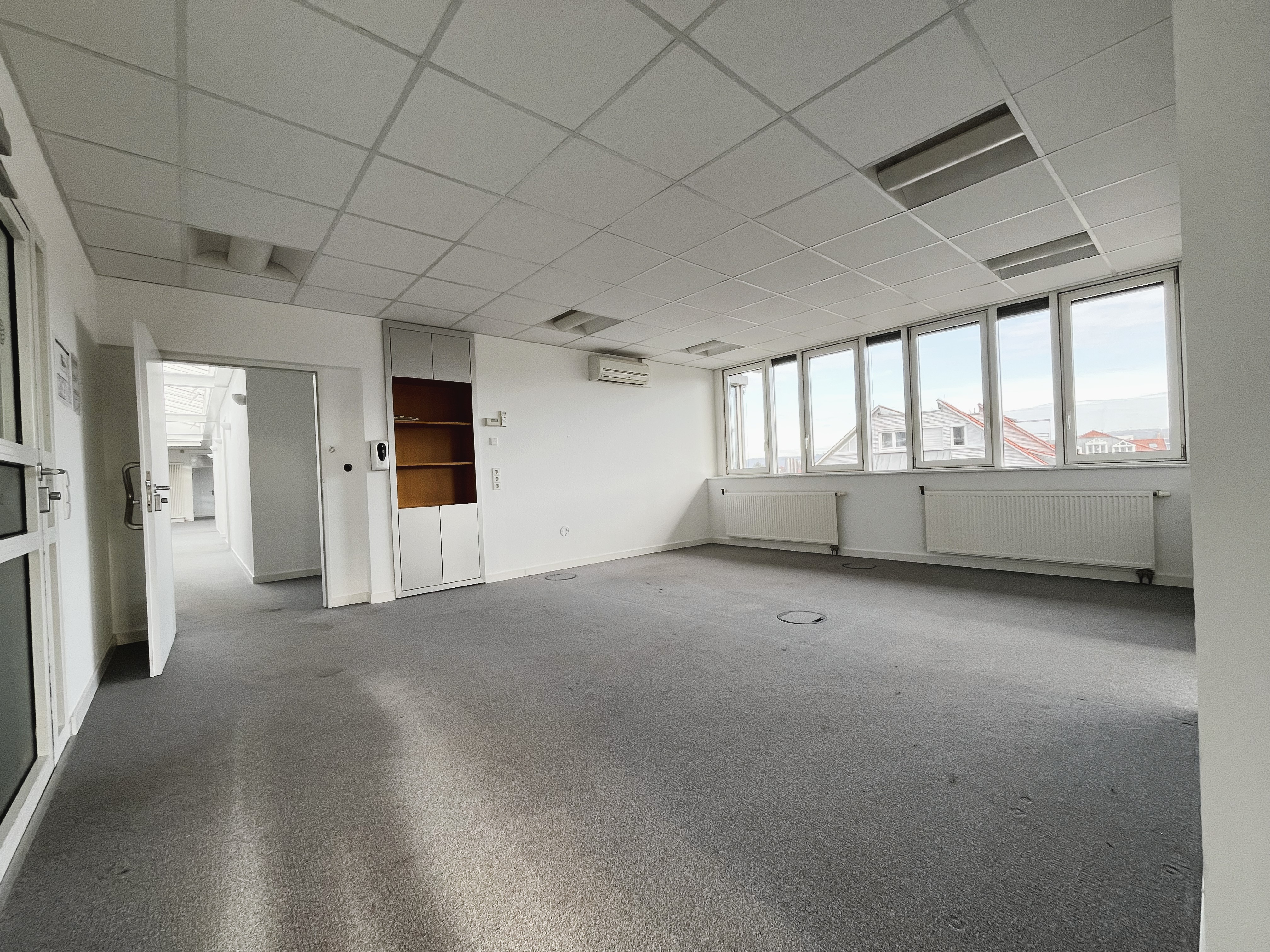 Die Bürofläche bietet optimale Voraussetzungen für modernes und effizientes Arbeiten: große Fensterflächen sorgen für eine angenehme Tageslichtatmosphäre, während die vollständige Klimatisierung aller Räume ganzjährig für höchsten Arbeitskomfort sorgt. Das Zusammenspiel aus Funktionalität, Helligkeit und hochwertigem Ambiente schafft ein inspirierendes Arbeitsumfeld mit repräsentativem Charakter.