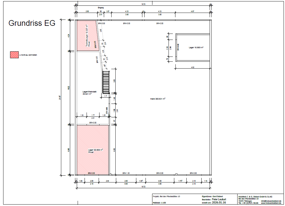 Das Objekt wurde bisher als Zimmerei (Holzbaubetrieb) genutzt und ist demensprechend ausgestattet.