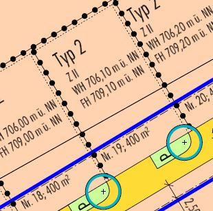 | Grundstücksgrößen: ab 399 m2 bis 517 m2 | |