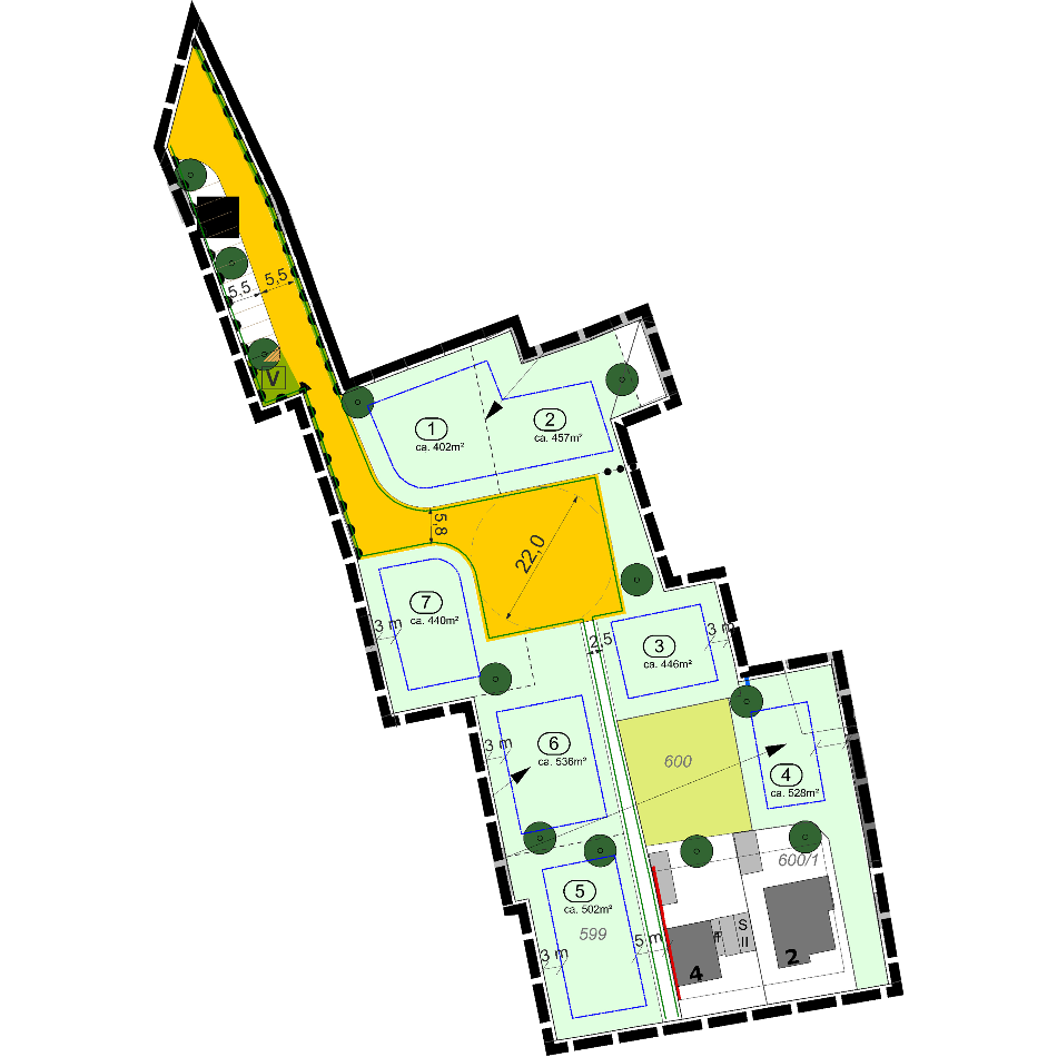 | Grundstücksgrößen: ab 404 m2 bis 531 m2 | |