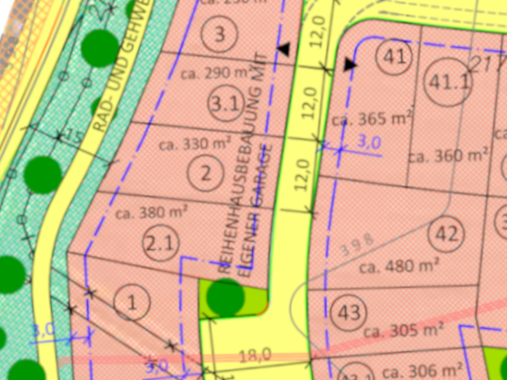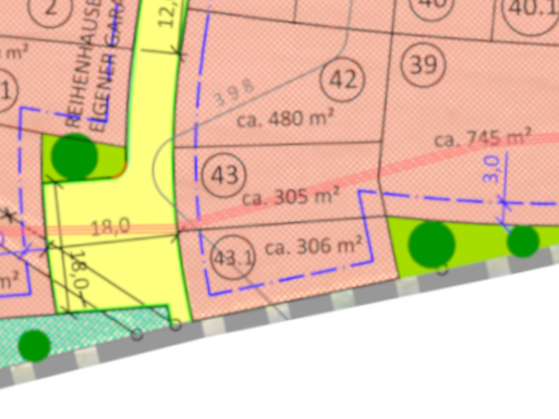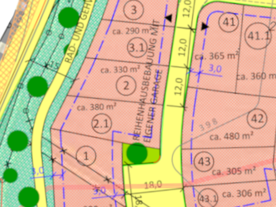 | Grundstücksgrößen: ab 305 m2 bis 382 m2 | |