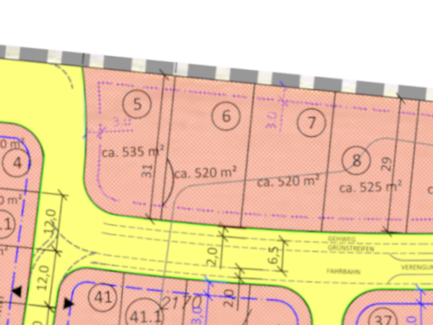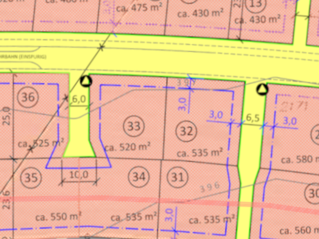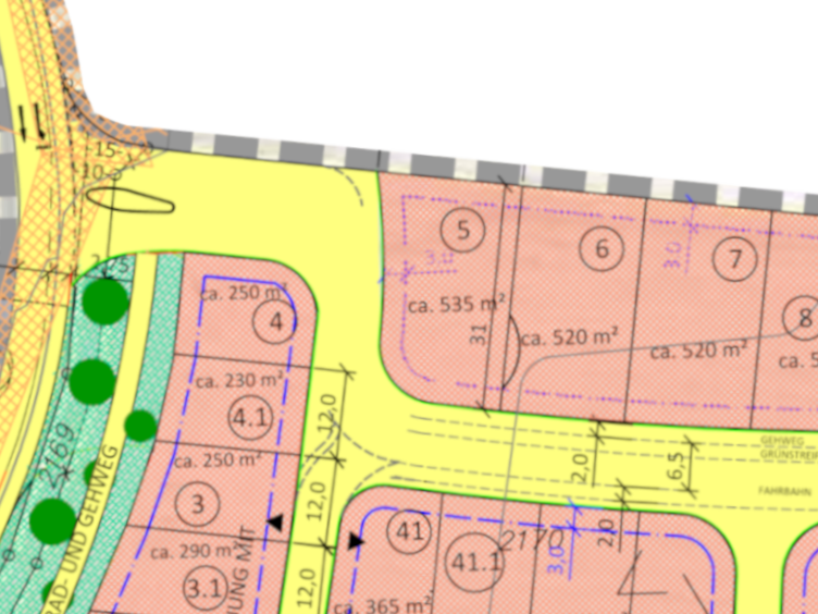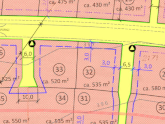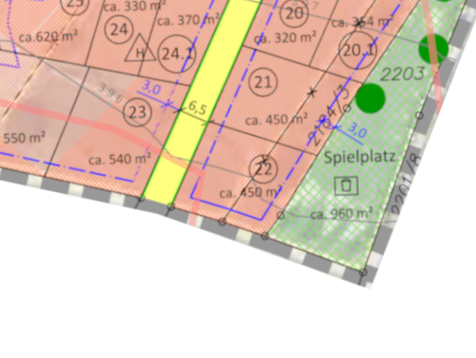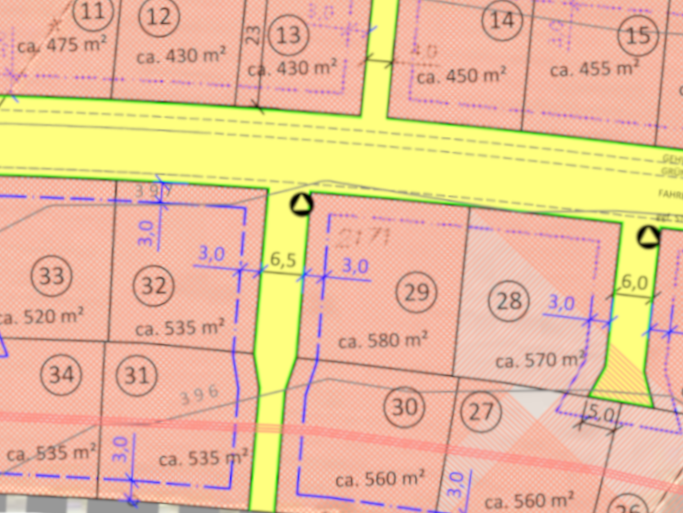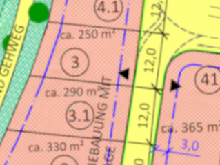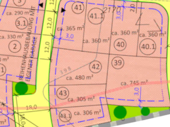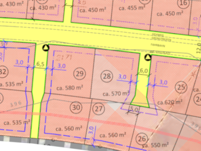 | Grundstücksgrößen: ab 451 m2 bis 586 m2 | |