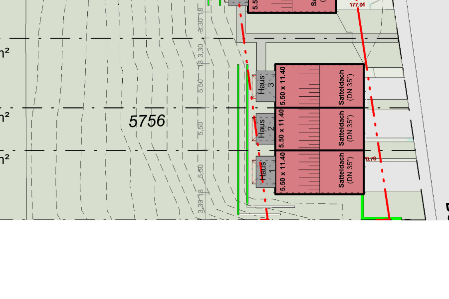 Das Grundstück kann mit einem Reihen-Mittelhaus bebaut werden: