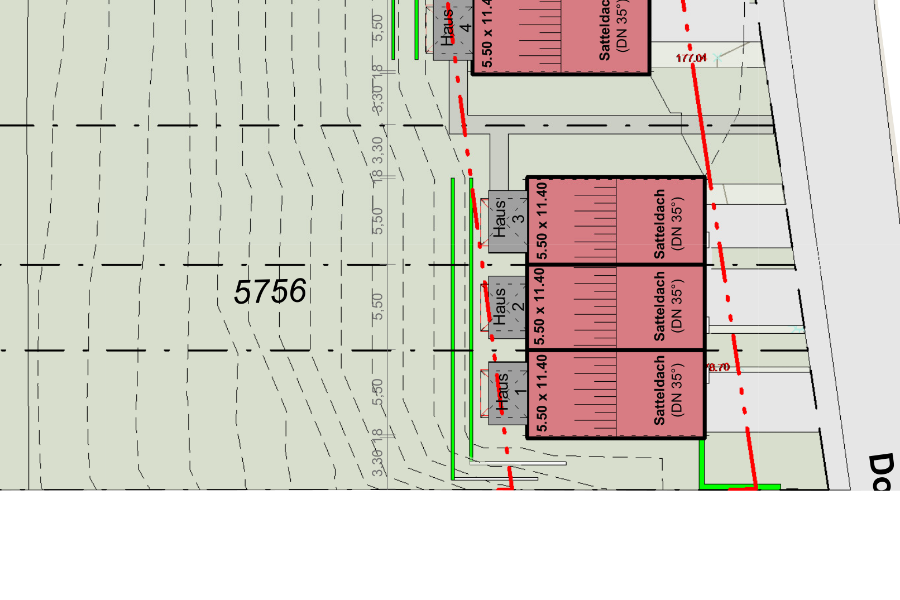 Das Grundstück kann mit einem Reihen-Eckhaus bebaut werden: