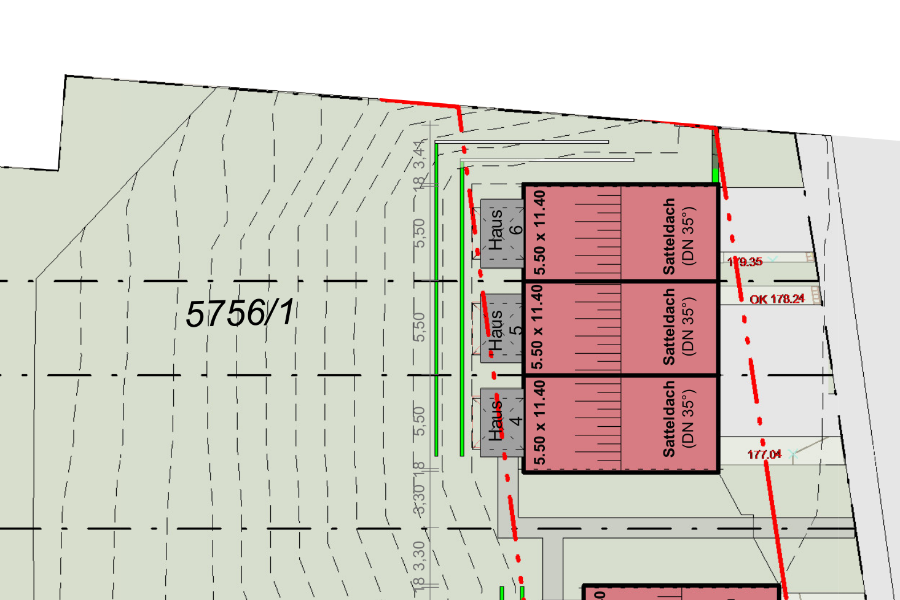 Das Grundstück kann mit einem Reihen-Mittelhaus bebaut werden: