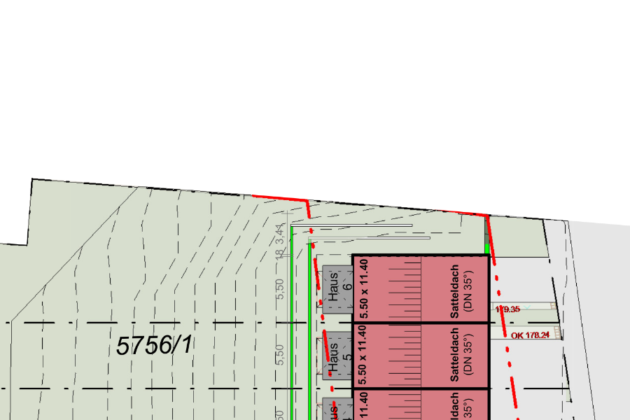 Das Grundstück kann mit einem Reihen-Eckhaus bebaut werden: