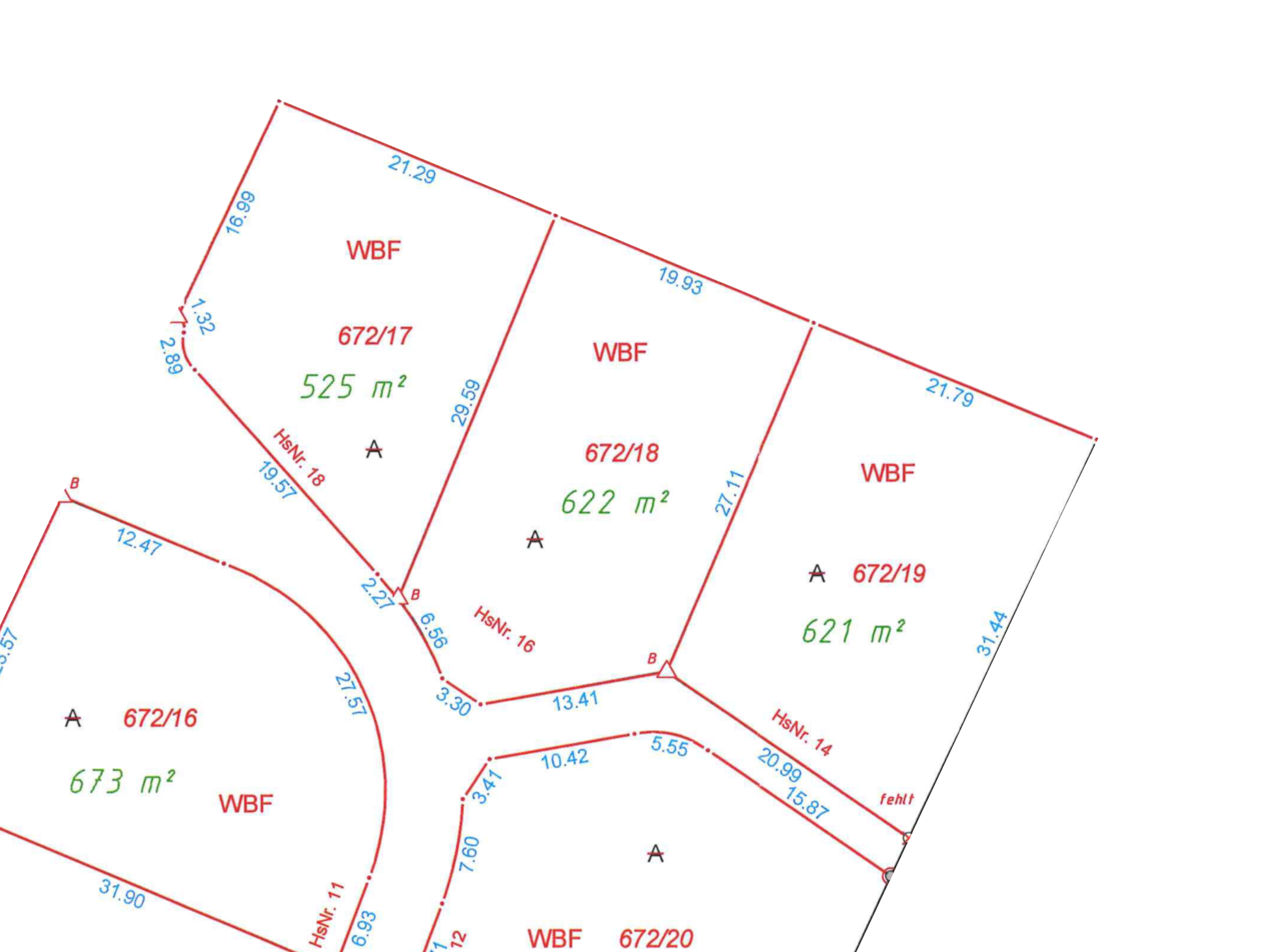 Die genaue Größe der Bauplätze wird erst nach Abschluss der amtlichen Vermessung rechtskräftig.