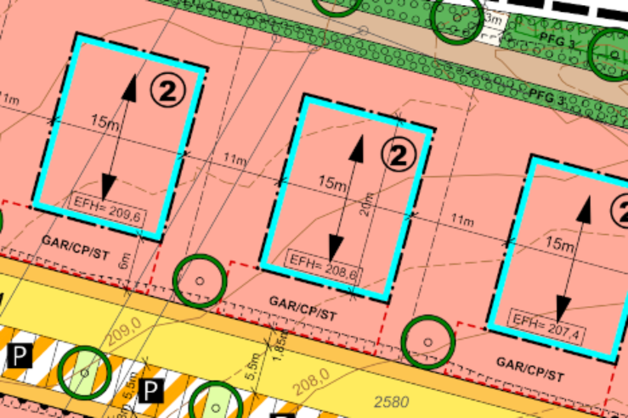 Sofern für ein Grundstück besondere Hinweise gelten, sind diese bei den einzelnen Grundstücken vermerkt. Die Grundstücke können entsprechend des Bebauungsplans bebaut werden.