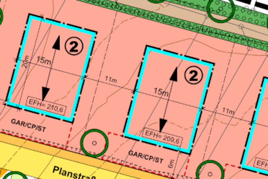Sofern für ein Grundstück besondere Hinweise gelten, sind diese bei den einzelnen Grundstücken vermerkt. Die Grundstücke können entsprechend des Bebauungsplans bebaut werden.