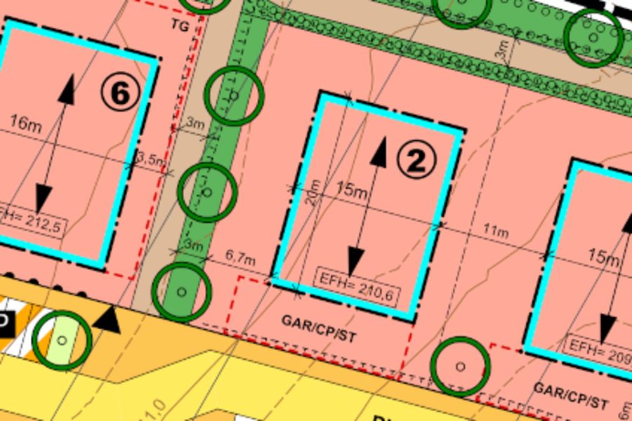 Sofern für ein Grundstück besondere Hinweise gelten, sind diese bei den einzelnen Grundstücken vermerkt. Die Grundstücke können entsprechend des Bebauungsplans bebaut werden.