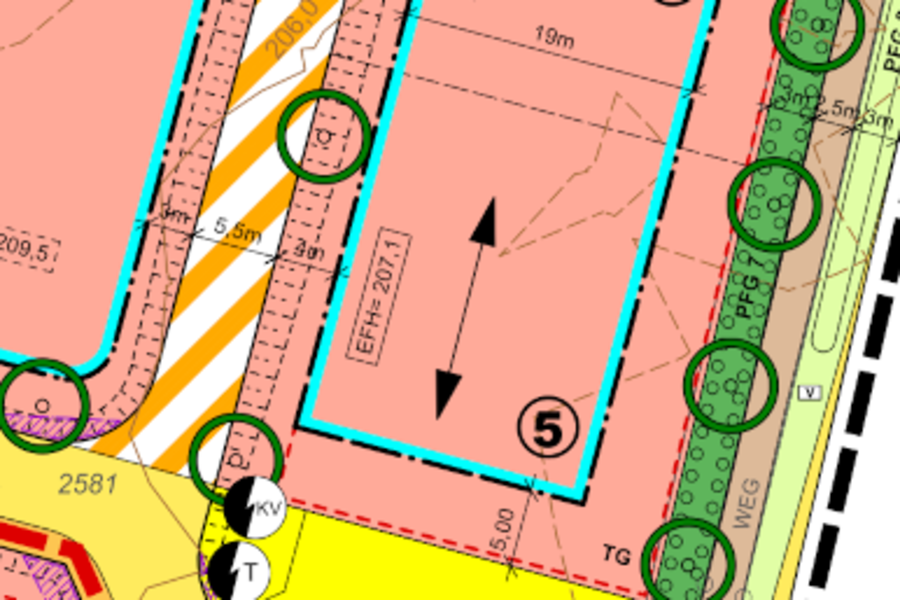 Sofern für ein Grundstück besondere Hinweise gelten, sind diese bei den einzelnen Grundstücken vermerkt. Die Grundstücke können entsprechend des Bebauungsplans bebaut werden.
