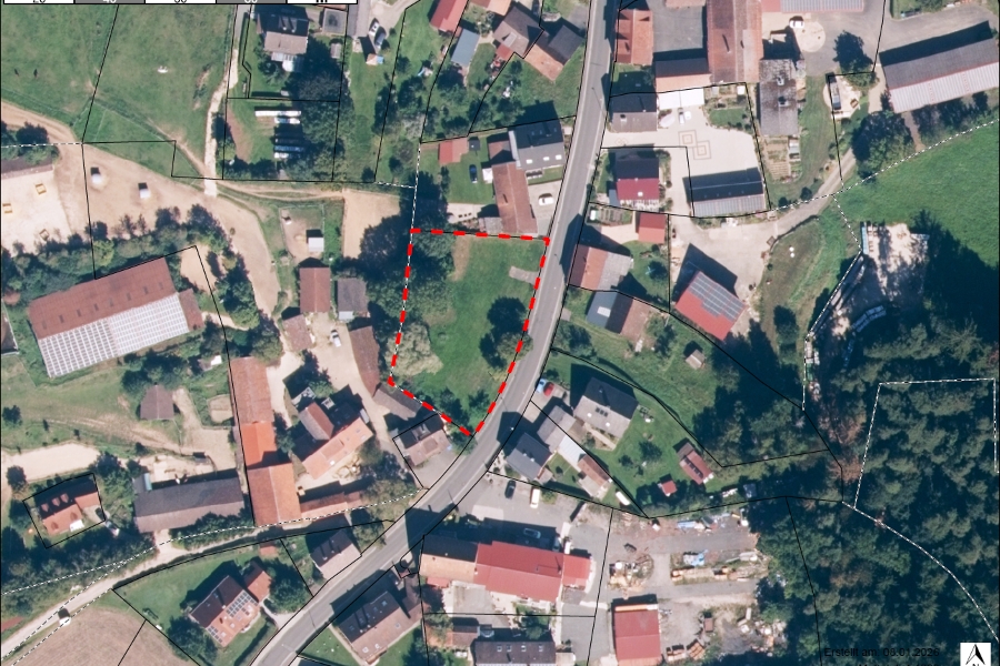 Der Eiegntümer möchte ich die Fl.Nr. 1259 mit 1604 m2 als zwei Parzellen verkaufen. Eine Größe zwischen 600 und 1000m2 pro Parzelle wäre möglich.
