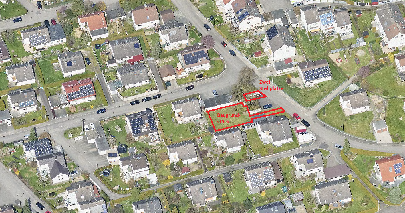 Zusammen mit dem Baugrundstück werden noch zwei PKW-Stellplätze verkauft. Der Kaufpreis für die beiden Stellplätze beträgt insgesamt 16.000 EUR und kommt zum Kaufpreis des Bauplatzes noch hinzu.