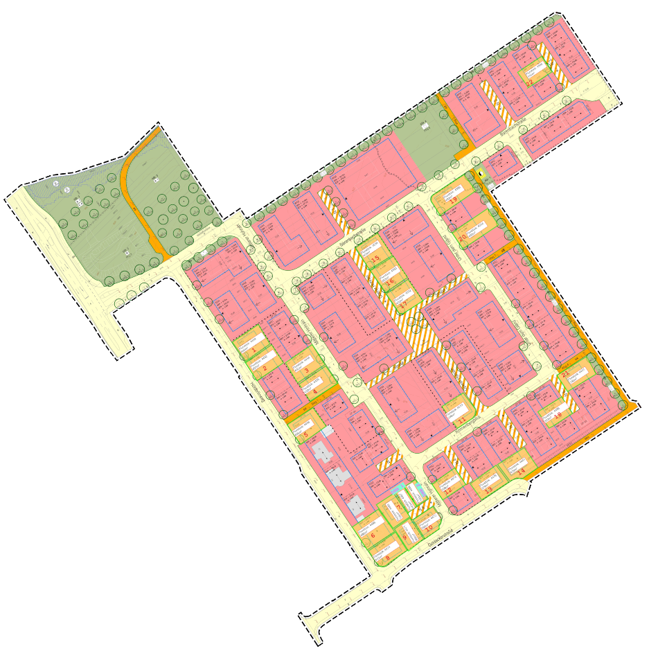 Neben Familieneigenheimen in Form von Einzel-, Doppel-, Reihen- und Kettenhäusern, sollen hier in verträglicher Mischung Möglichkeiten für kostengünstige, barrierefreie Geschosswohnungen geschaffen werden.